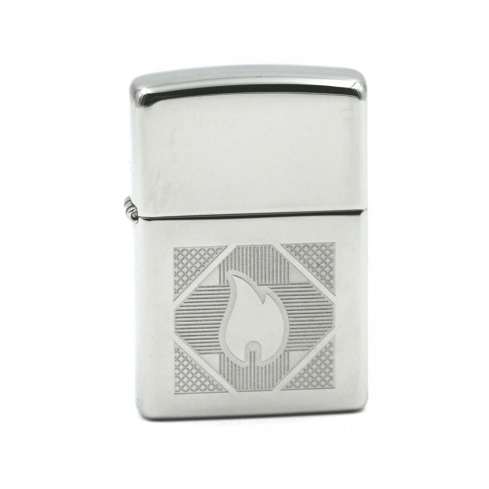 Ce briquet Zippo porte sur le devant du briquet differents motifs avec en son centre une flamme representant le logo de la marque.Le Zippo est un briquet qui comme tous les Zippo est garanti à vie.